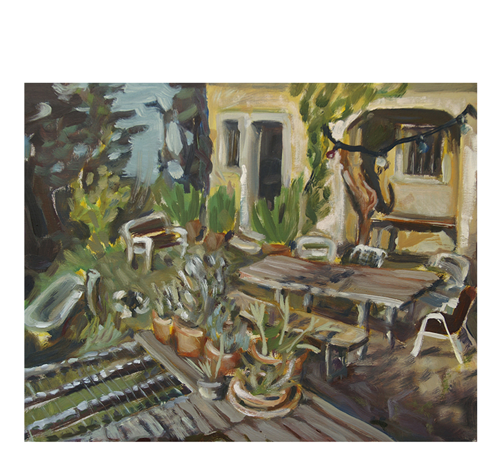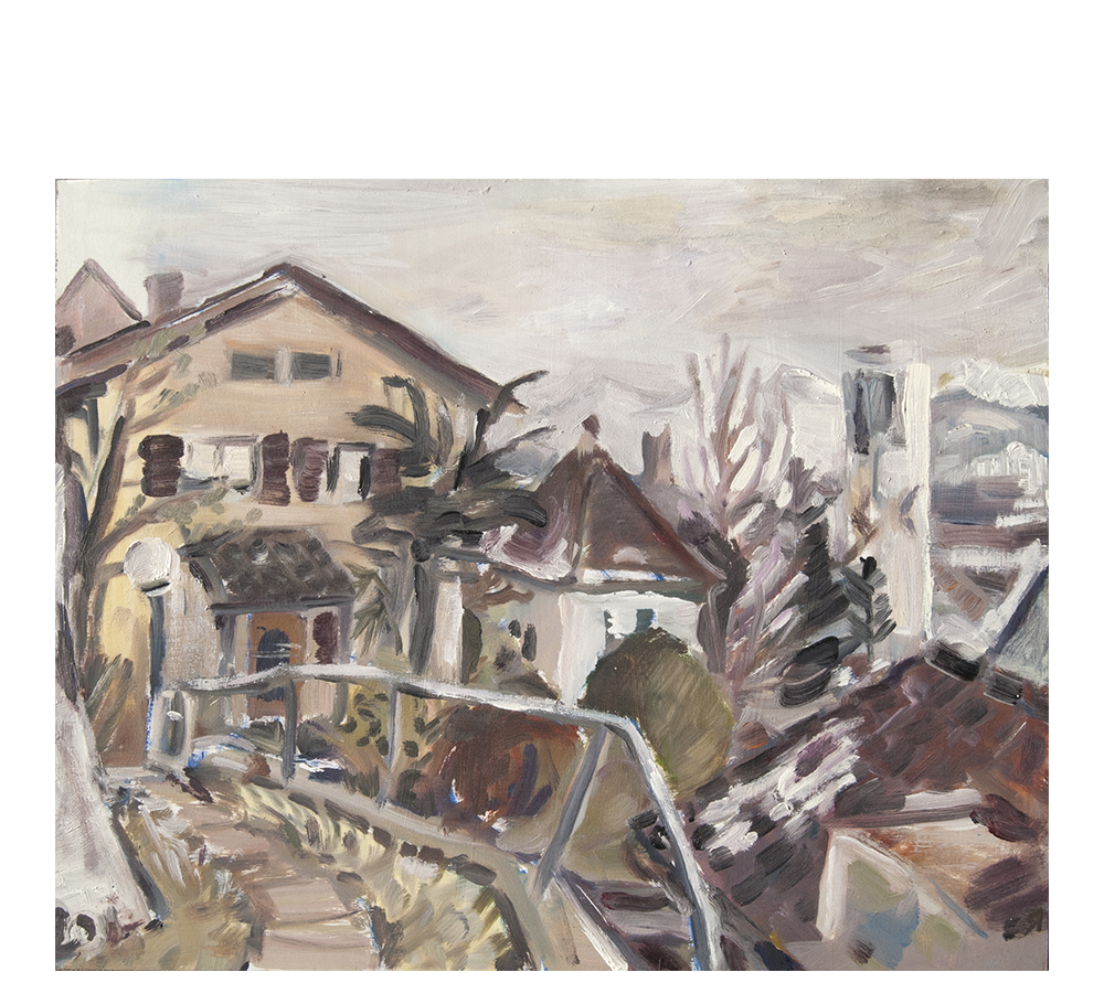 Garten «Mediterran anmutendes Nachbarhaus» 9/12, Öl auf Holz, 50 x 40cm